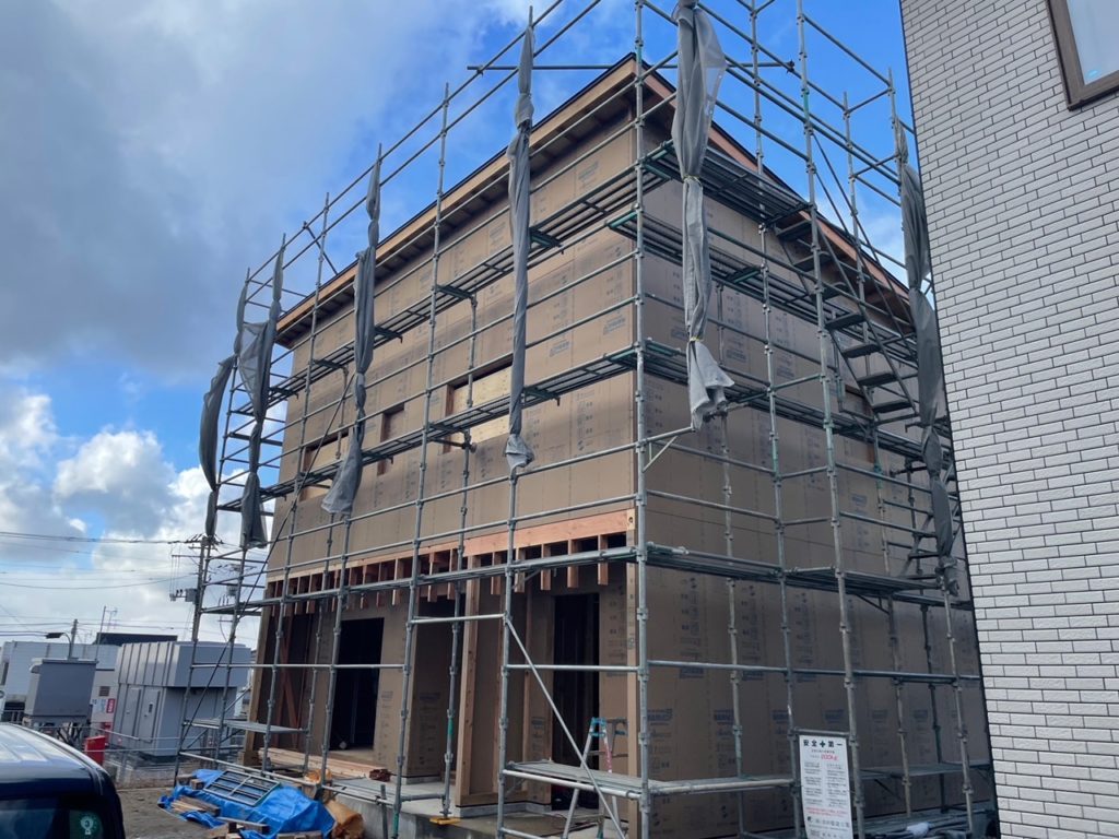 スタッフブログ 2022.01.20 新築住宅 part3 担当 建設部 S・T 順調に建て方も終わりました。 現在は、外壁下地等の施工を行っています。 この記事を書いたひと 建設部 S・T この記事が気に入ったらいいね!しよう < ブログページトップに戻る 【賃貸】西区五十嵐「多宝館」のご紹介 1月20日