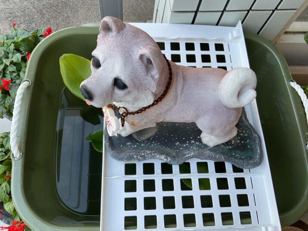 だけど、暑さは苦手ということで強い日差しを避けるために玄関先のワンコで日よけをしました!