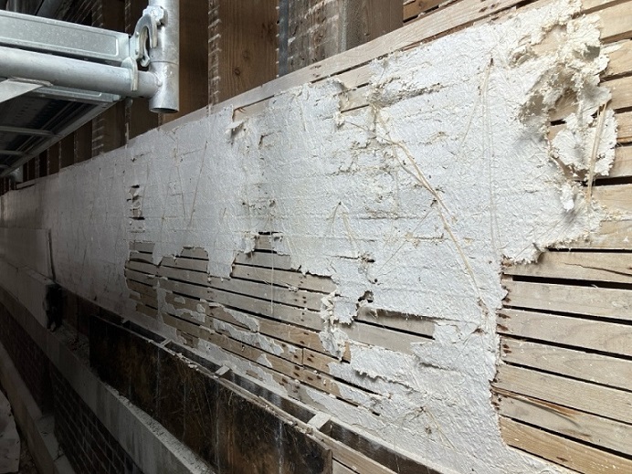 現在施工中の新潟県政記念館解体工事ですが、漆喰壁の解体を行っております。