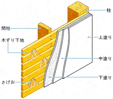 さげお(とんぼ)と呼ばれる材料が漆喰に配置されているのが良くわかります。