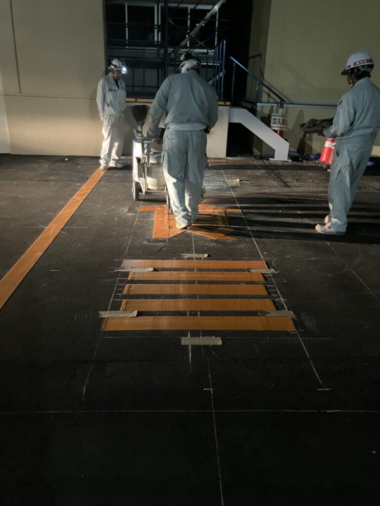 もう少しで部分引渡し間近ですが、天候が良かったのもあって遅く迄ライン引きを行いました。