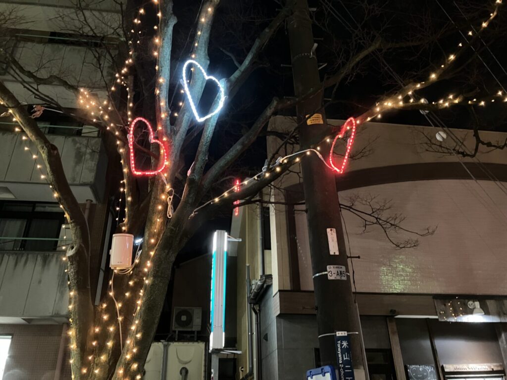 通りの入り口付近にはハート型が飾られています。