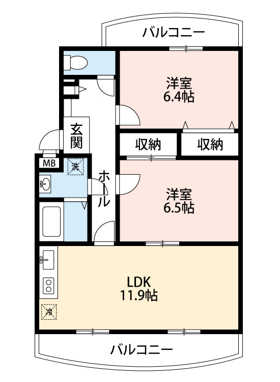 2LDK トランクルーム、宅配ボックスも完備