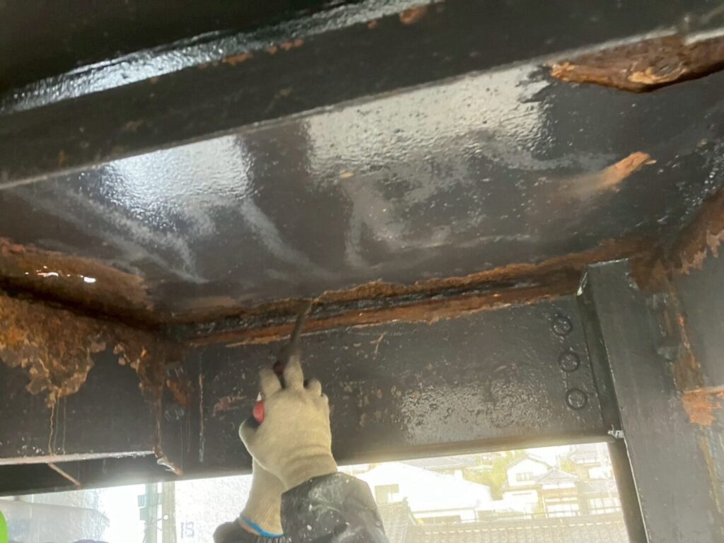 階段の裏側もサビ落としです。