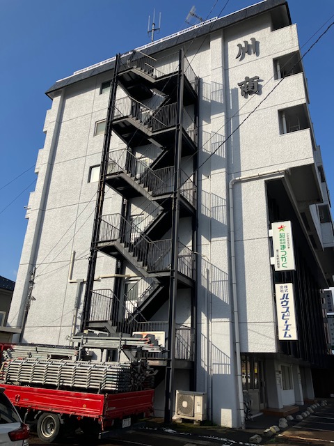 この度、県央営業所が入っているビルの非常階段の改修工事を承りました。