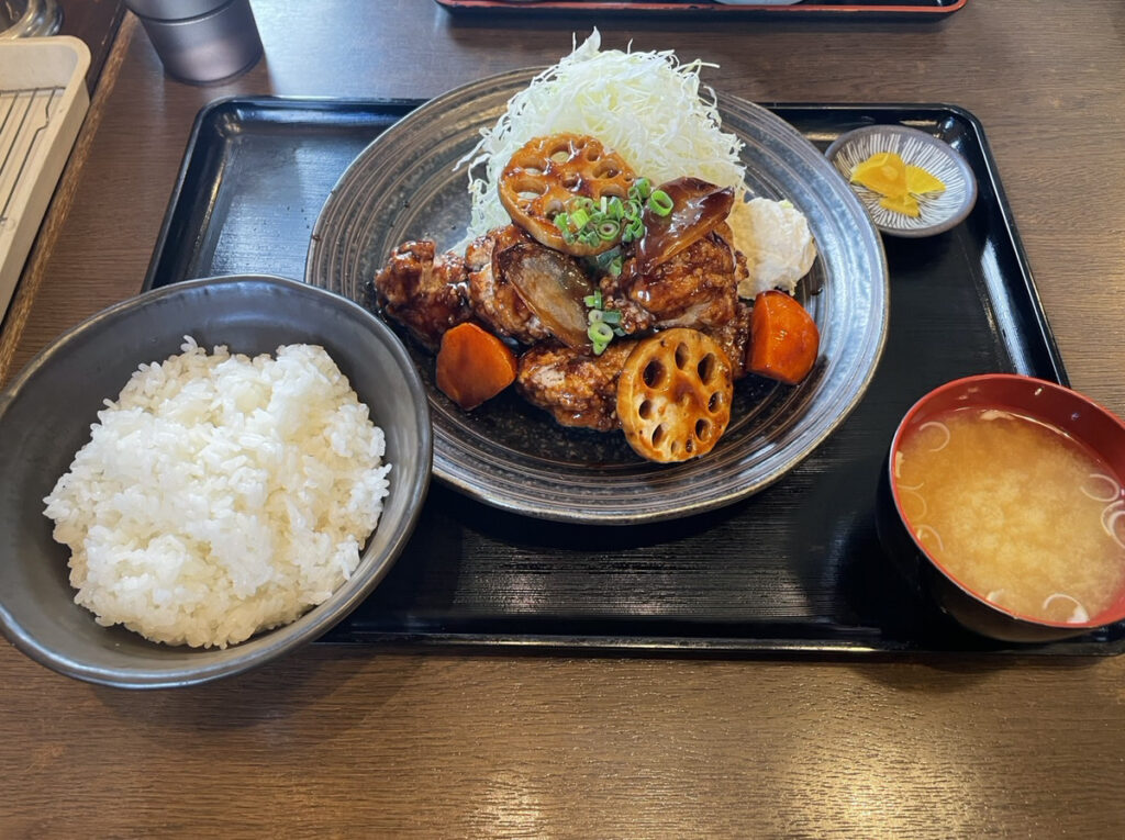 今回初めて鶏唐揚げの黒酢炒め定食を食べました。
