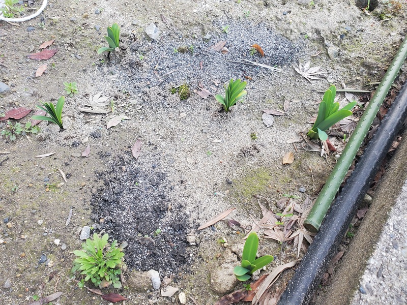 11月に頂いた、夏水仙の球根から葉っぱが出てきました。